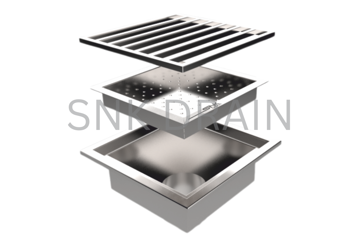 SNK offers an aesthetic, hygienic, and corrosion-resistant commercial kitchen drain system with slot, intermesh, slotted, and heel-safe grates in SS 304 – SS 316 grade.